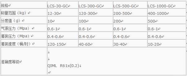 液體灌裝秤LCS技術參數